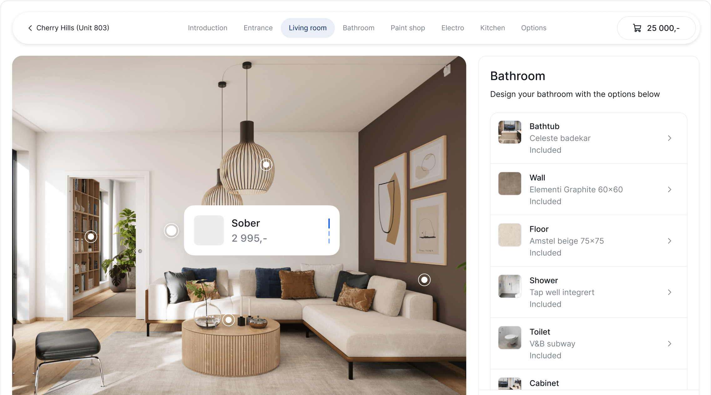Du kan enkelt integrere vårt Digitale Showroom på nettsiden din, la kundene dine oppleve det brukervennlige grensesnittet for å velge produkter å se interiørendringer.